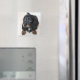 Cachorro preto bonito e adorável. Inverno, fotografia de neve. Perfeito para ele ou para ela. fotografia animal.