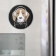O design apresenta uma ilustração de um beagle relaxante vestindo fones de ouvido e soprando a borbulha rosa. Com sua cor de fundo favorita personalizada, ela faz um ímã bonito, engraçado e único.