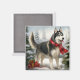 Imã Cachorro Siberiano Husky no Natal da Neve