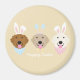 Uma bela ilustração de um cão que recupera o ouro vestindo orelhas de coelho e uma bonita bandana Páscoa. Cercados por ovos decorados de Páscoa, flores de primavera e borboletas.