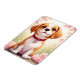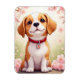 Esta ilustração encantadora apresenta um filhote irresistível, fofo, com olhos comoventes e brilhantes e um sorriso suave. O filhote, com o pelo castanho e branco macios, veste um colar vermelho brilhante adornado com um nome de etiqueta, acrescentando um toque de personalidade e calor. Sentado calmamente em meio a um jardim sereno de delicadas flores de cereja rosa, o filhote parece doce à frente, evocando um senso de paz e alegria. O fundo macio, pastel e leve cria uma atmosfera sonhadora e semelhante a um livro de histórias, perfeita para invocar sentimentos de serenidade e afeto gentil em tempo de primavera. Esta cena encantadora é ideal para ilustrações de livros infantis, cartões de saudação, ou mesmo designs roupa que visam espalhar felicidade e charme.