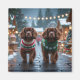 Este design festivo captura o espírito alegre da temporada de férias, apresentando cães adoráveis. Aninhados em um país das maravilhas de inverno, completo com uma árvore de Natal decorada e presentes lindamente embrulhados. Flocos de neve caem suavemente, adicionando um toque mágico à cena, enquanto as cores vibrantes das decorações de Natal criam uma atmosfera quente e alegre.