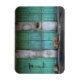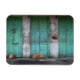 Imagem fotográfica retangular com cães vadios dormindo na rua em frente a velhas portas verdes sujas em Katmandu, capital do Nepal.