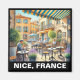 Introdução a Nice, França Nice, situada na Riviera francesa, é uma cidade vibrante conhecida pelo seu charme mediterrânico, pelas águas azuis e pela cidade antiga pitoresca. Ela é celebrada por sua culinária refinada, mercados coloridos e uma perfeita mistura de influências culturais italianas e francesas. A promenada da cidade à beira-mar, a Promenade des Anglais, e sua arquitetura histórica fazem dela um destino amado tanto para artistas quanto para viajantes. Descrição da cena A pintura captura um momento sereno, mas vivo, fora de um café quente, aninhado em uma rua de cobblestone em Nice. O café, com as suas cadeiras de ferro em formas brutas e mesas com telhas mosaicas, é enfeitado com um belo aviso amarelo que lê "Café de Provence." Os patrões tomam café e saboreiam pastos delicados, à sombra de uma oliveira majestosa. A luz do sol flui através de suas folhas, criando padrões apavorados no chão. O fundo apresenta edifícios de cor pastel, com janelas abertas e caixas de flores a rebentarem com flores vibrantes. Uma bicicleta, seu cesto cheio de flores frescas, repousa sobre uma parede de pedra, acrescentando um toque de elegância rústica. Quem poderia se interessar Esta pintura captaria os entusiastas da arte que adoram a cultura francesa, paisagens europeias e cenas de rua encantadoras. Seria particularmente atrativo para aqueles que amam a viagem, que desejam captar a essência da Riviera Francesa em suas casas. É uma peça ideal para cafés, espaços com temas de viagem, ou qualquer pessoa que pretenda evocar o quente e tranquilo ambiente de Nice na sua decoração.