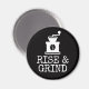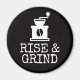 Design de amante de café divertido com um moedor de café e o slogan "Rise & Grind".