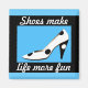 Íman de calçado de salto alto para mulheres que amam calçados. Ímanes designs, brancos e azuis, divertidos para "meninas" de qualquer idade que simplesmente amam moda e compram roupas.