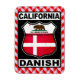 California Danish American Magnet. Design da Califórnia dinamarquesa, ao estilo de uma placa de rota legal americana. O texto California Danish está ao longo do topo e do fundo, com a bandeira do Estado da Califórnia e a bandeira da Dinamarca a dentro da placa de rota. Excelente para os californianos de ascendência dinamarquesa, e para ex-pais na República da Califórnia!