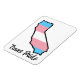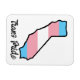 Mostre seu Orgulho com este ímã flexível da Bandeira do Orgulho Trans na forma da Califórnia! O perfil da Califórnia sobrepõe a bandeira azul, rosa e branca do Orgulho Trans. Personalize facilmente a mensagem, se quiser! Mostre sua identidade ou suporte com este ímã divertido.