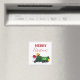 Uma bela ilustração de um caminhão de lixo de reciclagem de Natal vestindo um chapéu de Papai Noel e decorado em luzes de Natal com palavras "Feliz Natal". Um design de ímã de Natal ideal para entusiastas de caminhão de lixo grandes ou pequenos, meninas ou meninos.