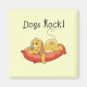 Um cão marrom bonito relaxa feliz em sua cama do filhote de cachorro e o texto preto lê "cães balança!" em nossos cães balance t-shirt, canecas, mousepads, botões, cartões, e mais!