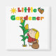 Uma menina loura pequena olha acima para ver a parte superior do milho desengaçar o crescimento em seu jardim neste design de jardinagem bonito e colorido em t-shirt, em canecas, em mousepads, em etiquetas, e em outros artigos de jardinagem.
