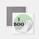 Camisas Boo, canecas, cartões, adesivos, sacos de tote, botões e ímanes do Dia das Bruxas, e outros roupa de design fantasma do Dia das Bruxas e presentes com um fantasma e texto que diz "I Boo!"
