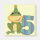 Se você ama sapos, vai adorar nossas camisetas de aniversário do 5 do Partido, roupas de cama, sacos de tote, botões de aniversário e mais o quinto aniversário especial! Possui um sapo verde vestindo um chapéu de partido pontilhado de polka verde e um grande número de striped azul 5!