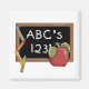 Uma bela escola e design de leitura com um quadro-negro da escola, giz, maçã vermelha, e texto que lê ABCs e 123 sobre camisetas temáticos da escola, canecas, ímãs, sacos de tote da escola, adesivos e muito mais.