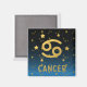 Íman personalizado para "Cancer" com símbolo zodiac do ouro e estrelas douradas com fundo azul e gradiente preto. Disponível em vários tamanhos.