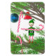 Magnet com minha imagem de um elfo fofo vestido de vermelho e verde colocando canetas doces em uma árvore de Natal.