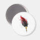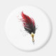 Caneta antiga, desenhada artificialmente, embelezada com pena vermelha escura sobre fundo branco.