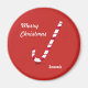 Magnet com uma bengala doce e feliz. O ponto apresenta as palavras "Feliz Natal" e um nome personalizável.
