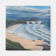 A pintura retrata um dia nebuloso e nublado na costa, com ondas rítmicas chegando à praia.