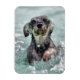 Fotografia bonita de um filhote de cachorro remando em uma piscina.