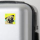 Arte contemporânea de Pug em fundo amarelo com círculos em cor aqua