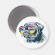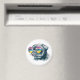 Esta design apresenta um cachorro olhando através dos óculos escuros em uma cena tropical.