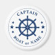 Imagem do frigorífico na moda round com o Capitão ou outro título, o seu nome de barco personalizado ou outro texto desejado e uma roda de naves personalizada - hélio em azul marinho a branco ou escolha cores de fundo para corresponder à sua decoração. Faz um presente único excelente.