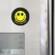 Este ímã tem um rosto amarelo com um sorriso feliz e olhos azuis e as palavras "Tenha um bom dia!" Personalizar para alterar as cores de fundo e texto.