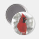 Este ímã apresenta um cardeal vermelho brilhante. Ele é realmente o rei dos pássaros do quintal! Aqui ele está preso em um trilho de neve comendo sementes de girassol de óleo preto enquanto a neve de inverno gira ao seu redor.