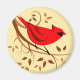 Cardeal vermelho estilizado em galhos decorativos em espirais com folhas em cor de outono