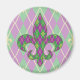 Um padrão harlequin de verde e roxo se transforma em um argilo lúdico com uma camada de contornos de diamante de ouro e flur de lis, criando um padrão divertido e colorido perfeito para qualquer nova orleans influenciou a celebração do Mardi Gras. O padrão é mascarado atrás da silhueta de uma flor de lis para adicionar uma nota final divertida.