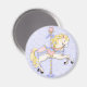 Bonito carrossel branco com flores, fitas e corações cor-de-rosa sobre fundo roxo.