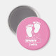 Este ímã rosa personalizado foi projetado tendo em mente mães e provedores de assistência. Quer você seja uma futura mãe, pediatra, obstetra, profissional de família, parteira ou profissional de família, este ímã personalizado é uma adição divertida ao seu lar ou escritório. Apresentando um par de adoráveis pés de bebê e um sinal de carga abaixo, este ímã é um presente divertido para uma mãe expectante e para aqueles que se preocupam com mães e pais grávidas e que trabalham em torno de recém-nascidos.