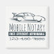 Rápido - eficiente - Barato. Anuncie seu negócio notarial viajante com estilo e orgulho. O ímã personalizado faz um presente ponderado para qualquer notário profissional ou agente assinante de empréstimos que preste serviços legais ao público. Este design de carro de movimento rápido é adequado para fundos brancos e leves. Personalize alterando o "Número de telefone" para o número de telefone comercial, o nome, a localização ou qualquer outro texto escolhido. Dica do design: Dimensione o texto para flutuar agradavelmente no espaço abaixo da faixa azul.