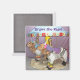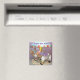 Este ímã apresenta recuperadores de ouros como cavalos carrossel em um carrossel. A mensagem diz: "Aproveite a corrida!".