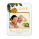 Um moderno e simples e elegante cartão fotográfico de JOY Holiday com limão fresco limão laranja limão, no Natal, com lindos ramos verdes com limão seco/ornamentação laranja pendurada num Cypress Branch de Natal. Você pode personalizar este cartão de ímã de feriado novo com seu próprio texto e foto.
