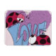 Duas belas joias olham umas para as outras enquanto uma se senta no alto da letra L da palavra, AMOR. Enquanto a outra inseto de amor fica em frente a um coração roxo feito de pintura.