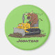 Este touro está fazendo sua própria terra se movendo, dirigindo uma escavadora em estilo de desenho animado.