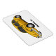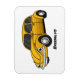 Um carro clássico amarelo feliz. Desenhado no estilo de desenho animado.