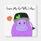 Um belo cartoon hippo vestindo um chapéu preto...Um excelente que diz acentua este hipopótamo bolinhas roxo.