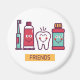 Esta design de cuidados orais apresenta uma bonita caricatura de uma escova de dentes, pasta de dentes, um dente sorridente e uma garrafa de lavagem bucal.