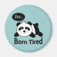 Panda de desenho animado fofo dormindo de bruços com a legenda engraçada "Nascido Cansado". O panda parece cansar-se facilmente por causa das manchas pretas escuras ao redor dos olhos que parecem olheiras por falta de sono. Para qualquer um que goste de animais adoráveis ou desenhos animados engraçados.