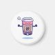Uma personagem de café de desenho engraçada e adorável com uma expressão lúdica e alegre.