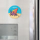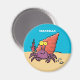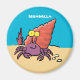 Esta animação de caranguejo eremita feliz é um roxo brilhante e colorido e laranja com fundo azul. Leva-me ao mar!