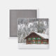Imagem fotográfica com uma tradicional casa de madeira com persianas verdes numa floresta no inverno, na Baviera, na fronteira entre a Alemanha e a Áustria.