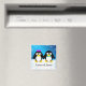 Dois pinguins brancos e pretos bonitos de mãos dadas num dia de neve de inverno. Um modelo abaixo dos pinguins para adicionar seus nomes.