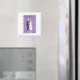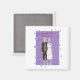 Pintura divertida de dois esqueletos, noiva e noiva, com espaço modelo para nomes e datas, e uma borda de estrelas roxas, impressas em ímãs. Procurar amostragem de produto correspondente: