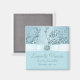 Lindos e frios diamantes azuis florais em um fundo azul pálido de floco de neve. Com um arco e fita azul pastel brilhante com um embelezamento de botão tipo diamante azul brilhante. Perfeito para uma queda ou casamento no inverno!