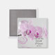 Defina o tom para seus núpcias futuros com o bonito Casamento de Elegância Orquídea Rosa Salve o Magneta Quadrado de Data. Esse elegante casamento de flores personalizado mantém os ímãs datados com uma fotografia botânica de uma flor de orquídea de falaenopse rosa, com fundo branco e espirais cor-de-rosa.