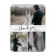 Imagem De Casamento Elegante E Minimalista, Obrigado Magnetos. modelo de cartões de agradecimentos de na moda com três fotos. Com o texto "Amor e obrigados" em uma bela fonte de script de tipografia escrita, escrita à mão, com inchaço ou caudas, em preto, sobre fundo branco. Forma cardíaca entre os nomes. Fácil de personalizar o nome e a data personalizados. Bonito cuidado para seus convidados de casamento. Se precisar de ajuda ou item correspondente, entre em contato com o designer!